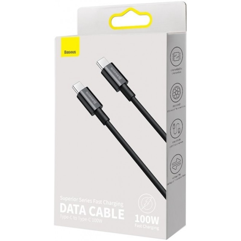 Baseus Superior USB-C na USB-C nabíjecí a datový kabel s podporou až 100W nabíjení.