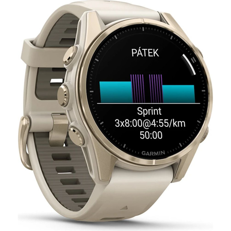 Garmin fenix 8 43mm AMOLED Sapphire Soft Gold with Fog Gray/Dark Sandstone Silicone Band