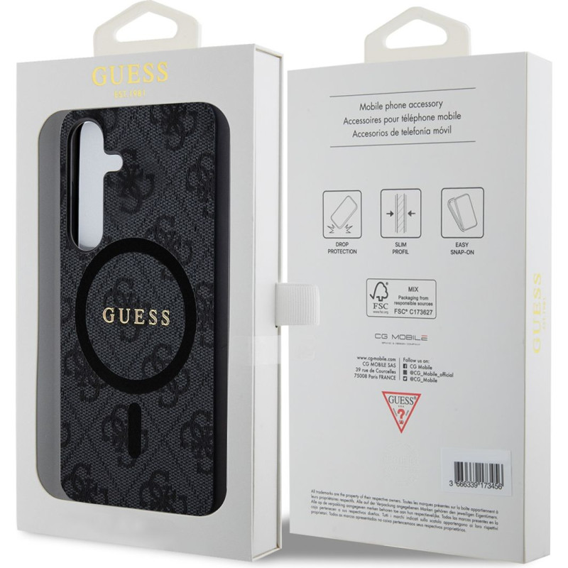 Guess PU Leather 4G Colored Ring MagSafe Zadní Kryt pro Samsung Galaxy S24 Black