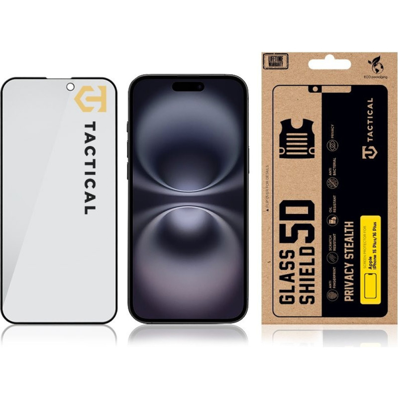 Tactical Glass Shield Privacy Stealth 5D sklo pro Apple iPhone 15 Plus / iPhone 16 Plus Black